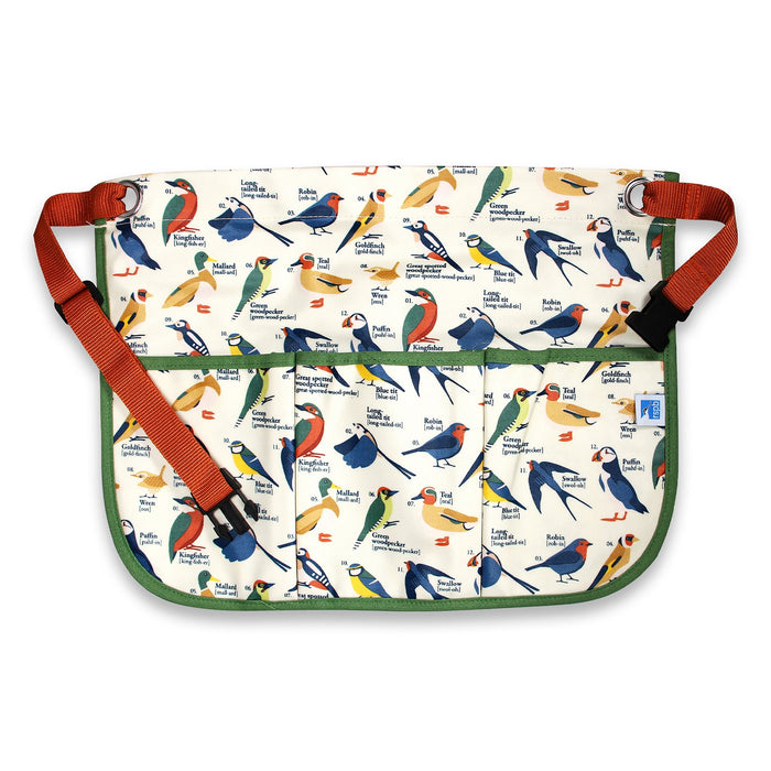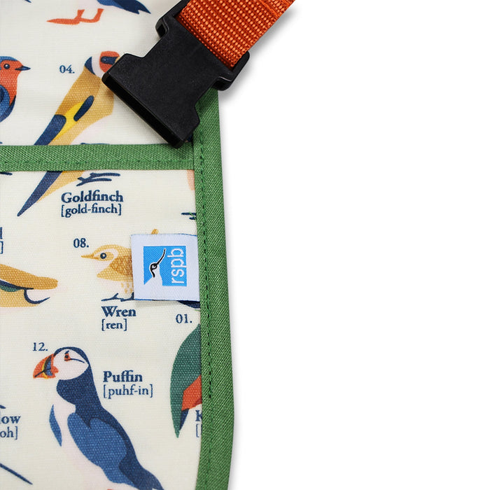 Join the flock and add to your gardening collection with our RSPB gardening apron. Featuring an array of beautiful bird illustrations including the puffin, kingfisher and robin, the apron includes three pockets along the front where you can keep all your tools while you work away in your outdoor space. It features a PVC coating so you can wipe it clean and an adjustable brick orange woven belt. A lovely gift for the gardening lover in your life.