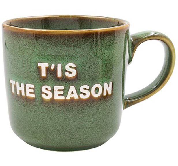 Get into the festive spirit with our Tis the Season mug in vibrant reactive glaze green! featuring the iconic phrase 'Tis the Season' in bold letters.